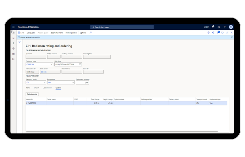 您无需进行任何前期开发,只需几周的时间,即可完成 Dynamics 365 与 C.H. Robinson 的集成。