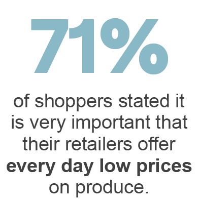 Price is a decisive factor in consumer choices. Price is top of mind for both retail partners and shoppers. Both believe that it is a top factor that impacts produce purchases.