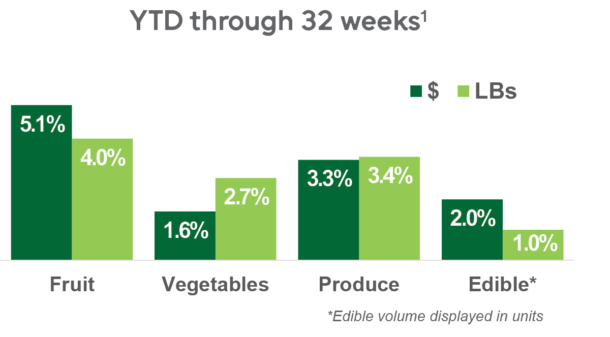 Produce has seen positive dollar and volume sales growth across all defined regions.
